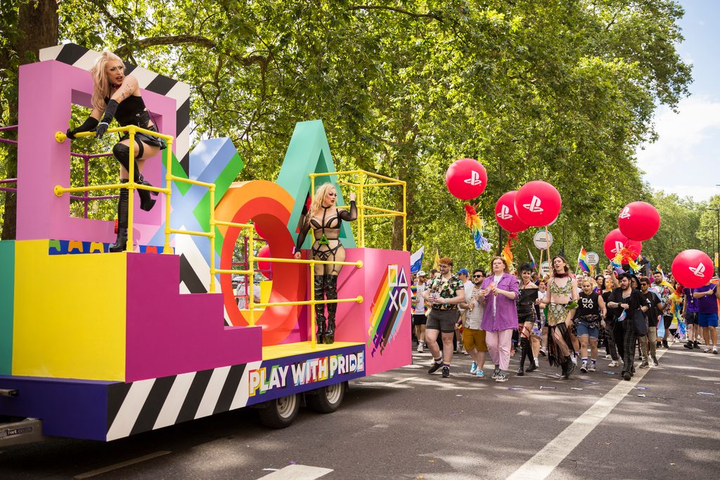 ロンドンオフィスでは、ロンドン出身のドラァグパフォーマーのMiss Chanel No.5、ウェールズ出身のバイセクシュアル・コメディアンのMorgan Rees、そしてクィアコミュニティーを代表するDJのGals Palsを招いたプライドパーティーが社内で開催されました。さらに、ロンドンオフィスは「ロンドン・プライドパレード」のスポンサーとなり、「Pride@PlayStation」の欧州メンバーやアライが参加しました。パレードはPlayStationブランドのフロートに加え、UK出身の5名のドラァグクイーン(Asttina Mandellaさん、Eden Queenさん、Brenda Rantさん、Lucy CaboosiさんとMonroeさん)のパフォーマンスで盛り上がりました。