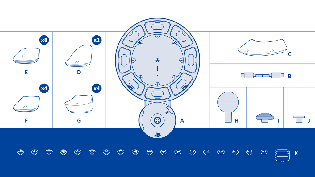 ボタンキャップ19個 | ♦︎ ワイドフラットボタンキャップ1個 ・(ボタンソケットふたつ分に覆い被さる形状) ♦︎ オーバーハングボタンキャップ2個 ・(ボタンキャップがコントローラーの中央にせり出しており、手の小さなプレイヤーも使いやすい形状) ♦︎ カーブボタンキャップ4個 ・(コントローラーの奥側に付けた場合は押す操作、手前側に付けた場合は引く操作で入力ができる形状) ♦︎ ピローボタンキャップ8個 ♦︎ フラットボタンキャップ4個 |